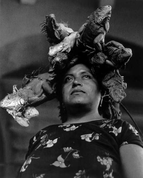 ‘’İguanaların Leydisi’’ bize hürmet dolu bir bakışla başında dört iguanayı dengede tutan Zapotek kadın karakterini gösterir. Graciela, yetmişli yılların sonlarına doğru arkadaşı Francisco Toledo’nun daveti üzerine Yucatán ve Oaxaca’ya geldiğinde, bu gezinin koleksiyonundaki en önemli görüntüyü oluşturacağını hayal bile edemezdi. Pazarı ziyaret etmeye karar verdiğinde, kadınlarla birkaç gün geçirip saygılarını kazanmıştı. Orada, başında bir taç şeklinde duran hayvanları yiyecek olarak satmak üzereyken “İguanaların Leydisi – Sobeida Díaz” ile tanıştı. Fotoğraf milyonlarca kez yeniden basıldı, kullanıldı Sobeida’yı artık tüm dünya tanıyordu.