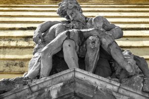 Önce, ana giriş kapısı üzerindeki heykele bakıyoruz. Ne anlatıyor bize? Ölülere sahip çıkan tanrı babayı mı? Yoksa gözleri dehşet içinde açılmış, sol eli yüreğinde, sanki hiç de ummadığı halde kucağına düşmüş çocuklarını ağırlayan bir insan babayı mı?