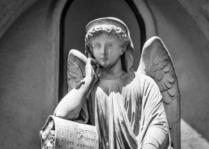 Kanatlarıyla, korumaya aldığı gömütün başında bir melek3; üzgün, enginlere dalmış; sade, duru bakışlarıyla yas tutuyor; derin düşüncelerde erimiş gitmiş, yaşananların anılarıyla yüklü ama sonsuzluğun da farkında adeta.