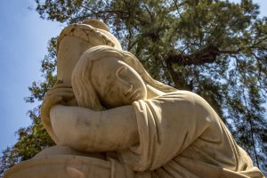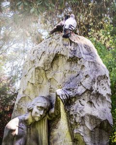 Bu kez, mezarlık girişindeki meydanda yer alan bir heykele bakıyoruz. Evet, kendine, hayatına sıkı sıkı sarılmış ama ölüm üzerine düşünen bir adam adeta bu. Bu arada, ben de, bir tür tafofil (mezalık düşkünü/gezgini; tapho-Yu.: mezar) sayılabilirim; yıllar önce dedemi gömdüğümden beri dünyanın değişik bölgelerindeki mezalıkları ziyaret ederim. Anılar acıtsa da yaralara merhem oluyor buralarda dolanmak. Çok şey öğretti bana mezarlıklar, yaşayanların hayatlarının özetini sundu. Evet, bu ölüler kentleri, o toplumun yaşama ve ölüme bakışını, yas tutma kültürünü, tarih, sanat, inanç sistemlerini, geleneklerini gösterdi. Ama en çok da, ölümü dışlamamayı, ölümlülük gerçeğini gösterdi; bu gerçeği içselleştirebilmenin yaşamı nasıl da zenginleştirdiği üzerine düşüncelere dalmamı sağladı, sağlıyor.