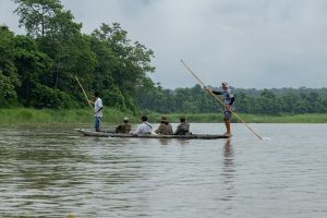 Bu arada yüzen timsahlar görünüyor. Biraz da tırsarak biniyoruz bir kanoya. Güzel fotoğraflar çekerek ilerliyoruz. Yanlış anlamadıysam bu nehir de Ganj’a bağlanıyormuş. Aynı Ganj gibi kahverengi, sanki toprak akıyor. Buna rağmen yüz çeşitten fazla balık yaşıyormuş bu sularda.