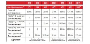 Kodak ise daha çok otomatik geliştirici sistemleri için detaylı bilgi vermiş. Flexcolor’un ev tipi küçük tank uygulama kitabında yeterli olmayan bilgi ise şöyle: