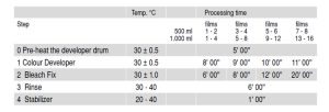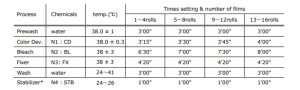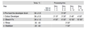 Not: Buradaki “Developer” ve “BleachFix” süreleri Kodak Flexcolor C41 ile uyumludur.