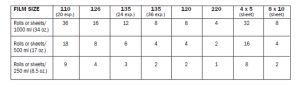 Not: Kullanılan film 220 tip olursa verilen film sayılarının yarısını düşünmek gerekir.