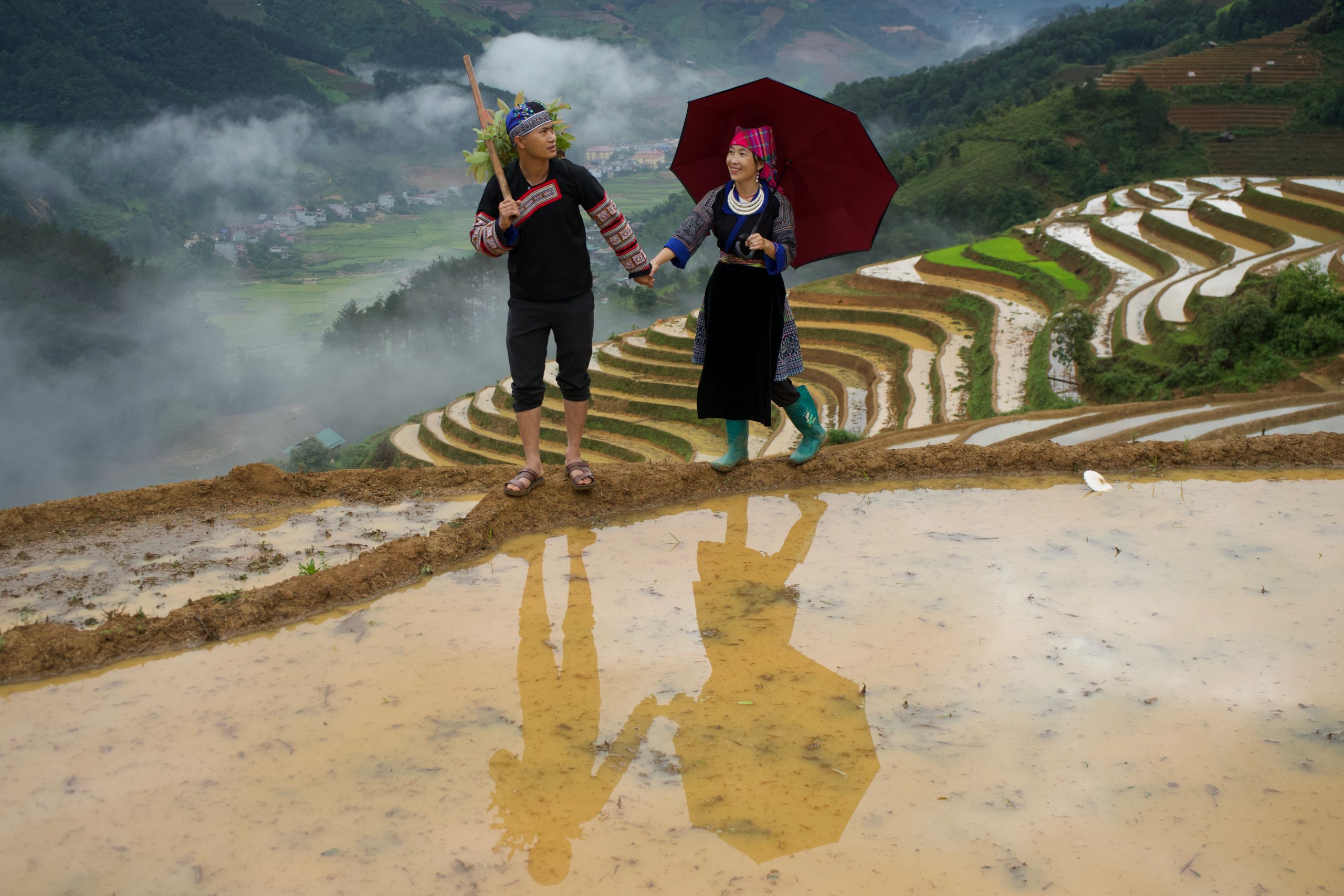 Geçen yaz Başkent Hanoi’den Sapa’ya kadar Vietnam’ın kuzeyine yaptığımız yolculuk fotoğraf açısından tam bir şölendi. Bu bölgede pirinç üretimi yoğun yapılıyor. Bilindiği gibi uzak doğuda pirinç tüketimi çok yaygın, hemen her öğünde yeniliyor, böylece tarımla uğraşan ailelerin hepsinin kendine ait pirinç terasları var ve ailecek çalışıyorlar. Bu bölgedeki Çin sınırına yakın Mu Cang Chai kasabasında iki gece konakladık. Bizim Karadeniz bölgesinde olduğu gibi dere yatağında kurulmuş olan kasaba aynı zamanda fotoğrafçılar için turistik bir alan olmuş, vadiden yükselen dik yamaçlardaki pirinç terasları görsel olarak çok estetik çünkü. Bölgeye turlar düzenleyen yerel fotoğrafçılar sayesinde çok eğlenceli bir kaç gün geçirdik. Dağ köyü Sang Nhu’ya ulaşmak için motorların arkasında, virajlı dik yokuşlardan tırmanırken adrenalin dolu anlar yaşadık. Sang Nhu köyünde yaşayan Hmong etnik halkına mensup aileler dostça karşıladılar bizi. Özellikle bize modellik yapan ailenin küçük kızı ve köydeki diğer çocuklar, bize poz vermek için tüm gün çalıştılar. Rengarenk ekose eşarpla tamamlanan yerel giysileri içinde geleneksel tarım yapan ve hala doğal bir yaşantı sürdüren Hmonglar, samimi ve sıcak insanlar.