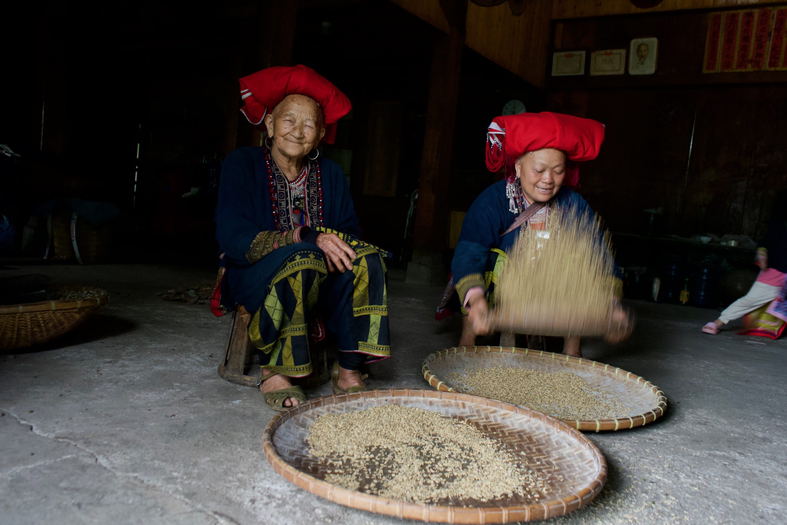 Sapa bölgesinden dönerken Ta Phin dağ köyüne uğrayarak burada yaşayan Red Dao kabilesinin kadınları ile tanıştık. Red Dao halkı, çevrelerindeki ormanlardan gelen şifalı bitkilerin kullanımında uzmanlaşmış ve bir bitkisel banyo terapisi geliştirmişler. Köyde, bu geleneksel terapiyi uygulayan birkaç spa tesisi de var. Tarım toplumlarının hemen hepsinde olduğu gibi bu köyde de yaşamı kadınlar kurguluyor; evde ve dışarıda onlar çalışıyor. Baskın olarak kırmızı giyen ve başlarını kırmızı örtüyle örten Dao kadınları, giysilerine iğne ile incecik işlemeler yapıyorlar. Göz nuru işlemelerle süsledikleri örtüleri ve çantaları sırtlarındaki hasır sepetlerde taşıyarak turistlere satmaya çalışıyorlar. Her bir giysi bir hikâye anlatırken kırmızı renk şansı ve bu topluluğun dayanıklılığını sembolize ediyor. Evlerine konuk olduğumuz ailenin 100 yaşını deviren ninesi, elinde iğnesi ve sarı ipek ipliğiyle kumaşını işlerken gülümsedi objektifimize.